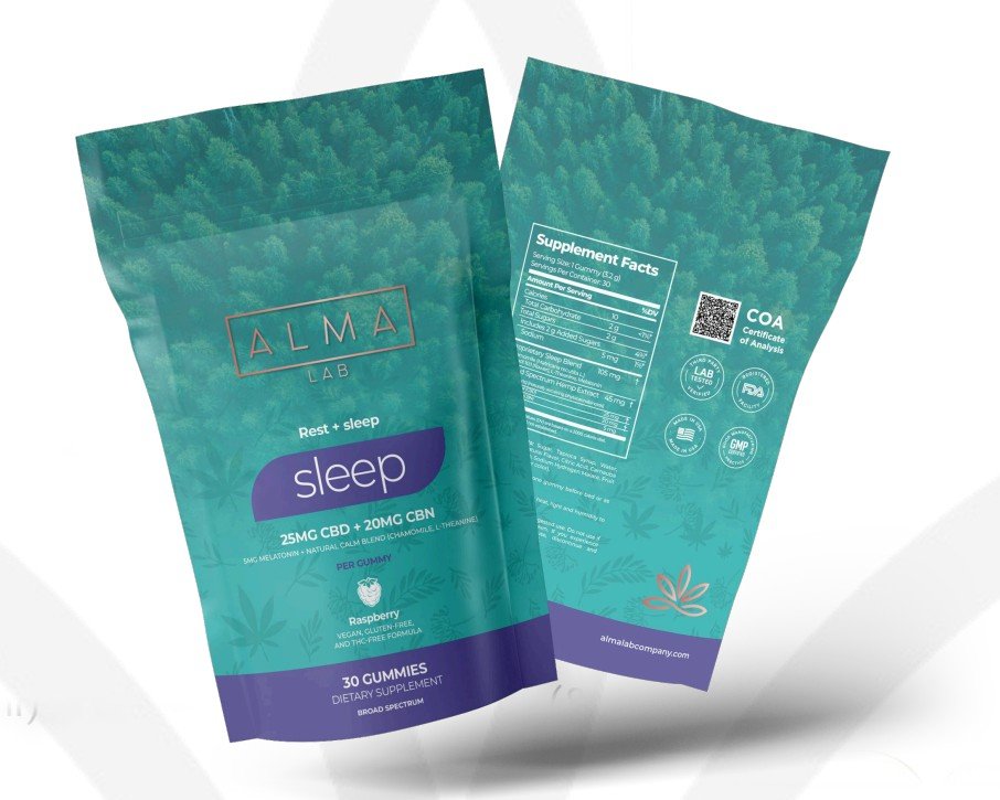 Alma Lab Rest + Sleep Gummies 25mg CBD 20mg CBN – Framboesa 30 Gummies