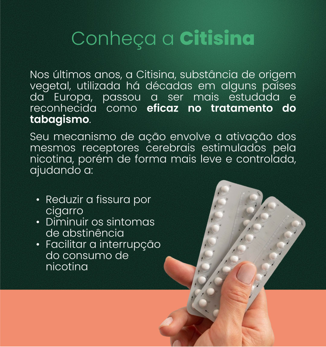 Nos últimos anos, a Citisina, substância de origem vegetal, utilizada há décadas em alguns países da Europa, passou a ser mais estudada e reconhecida como eficaz no tratamento do tabagismo.